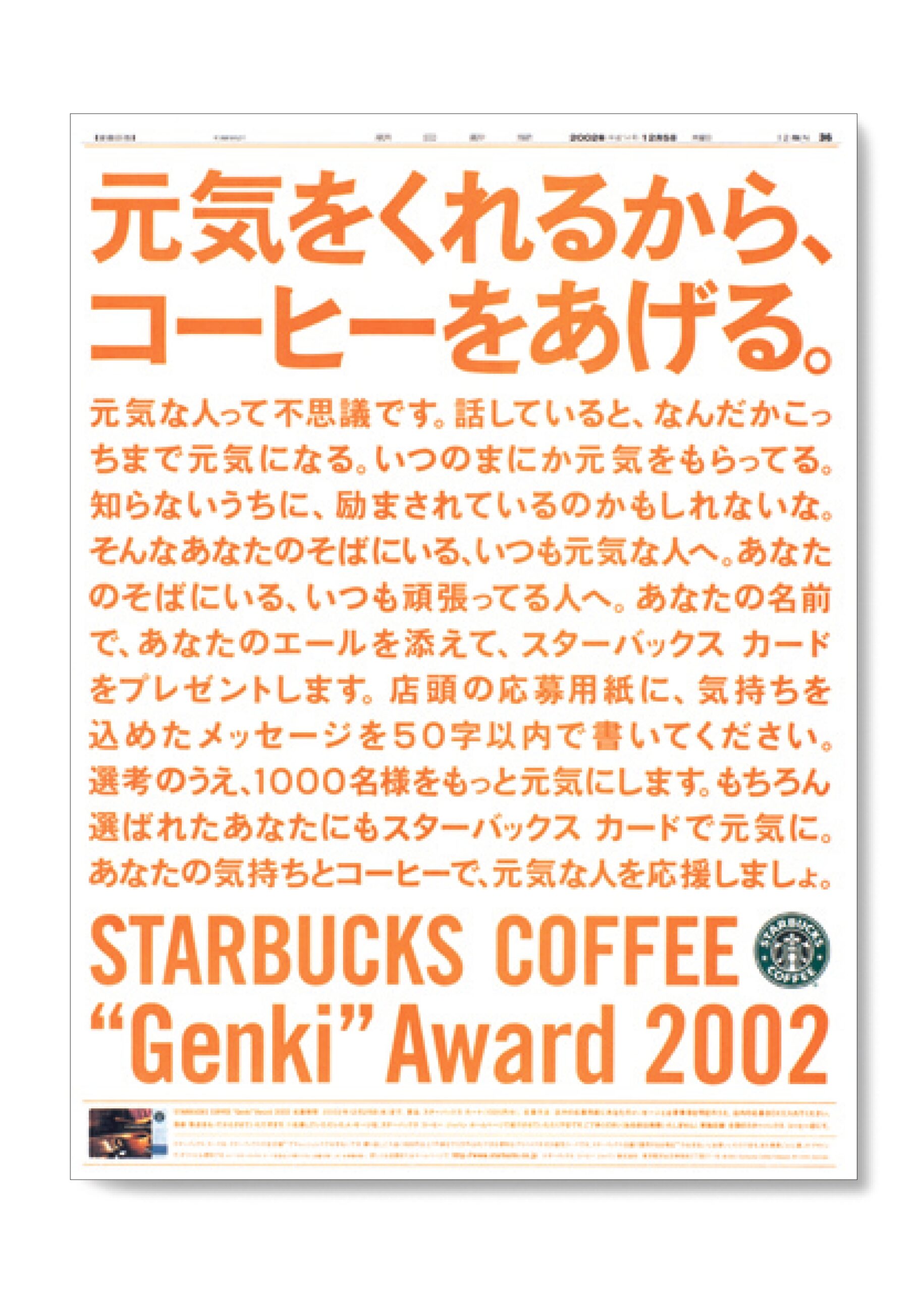 【2002年 朝日新聞全面広告(スターバックスカード導入記念キャンペーン告知】 画像 解説
