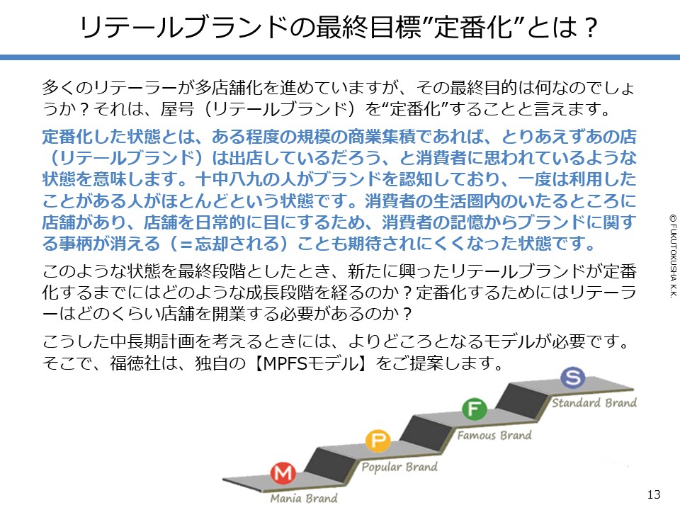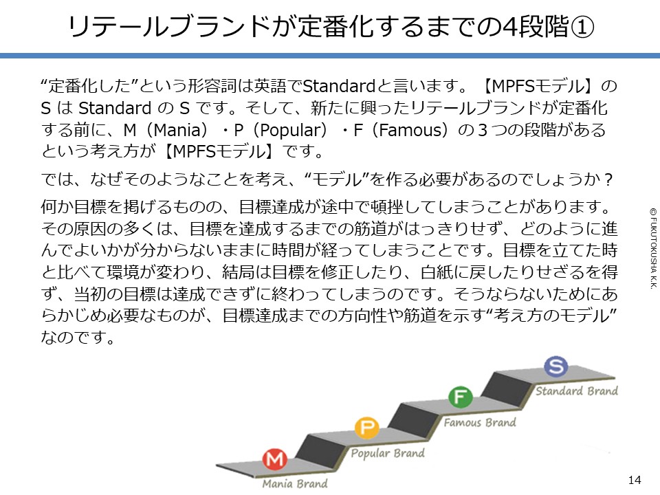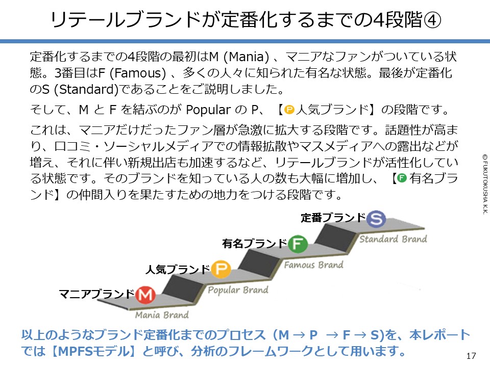 - 【分析のフレームワーク「MPFSモデル」】 ①リテールブランドの“定番化”とは ②定番化までの4段階